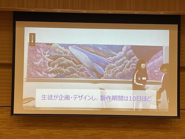 今、生徒ホールに、とても大きな素晴らしい絵画が展示されています。これは美術部の生徒たちが心を込めて作成してくれた作品です。テーマは「青春」です。原画は美術部:馬渡さんが描いてくれました。保護者の皆さま、是非、一度ご覧ください。