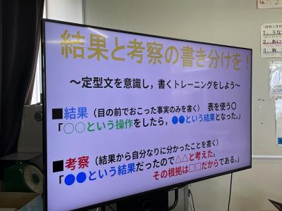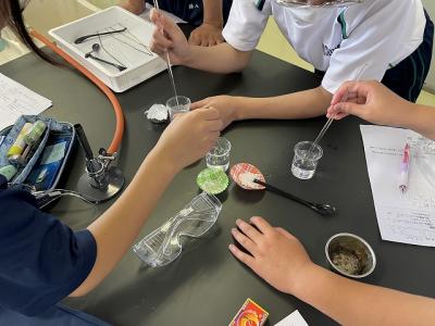授業の様子より 1年生理科「白い物質Xの正体は何だろう」