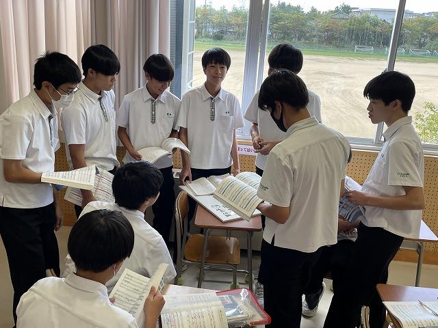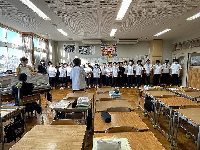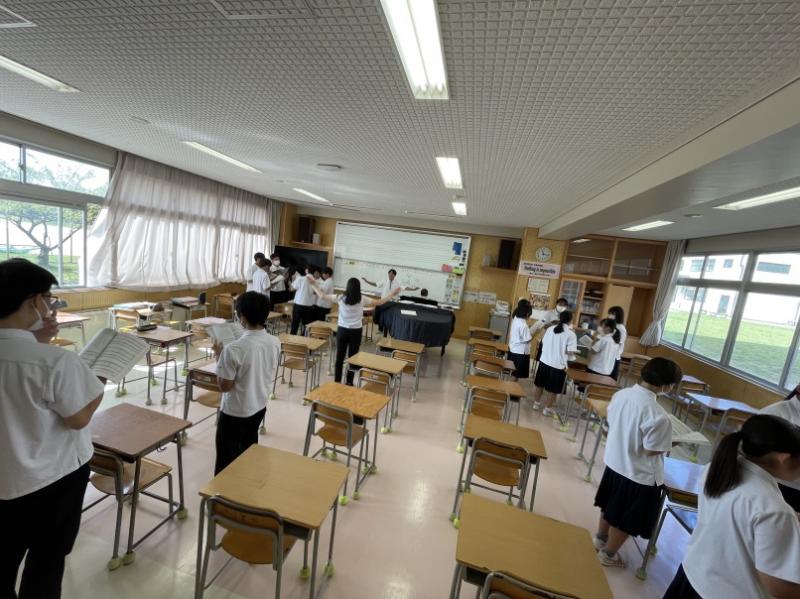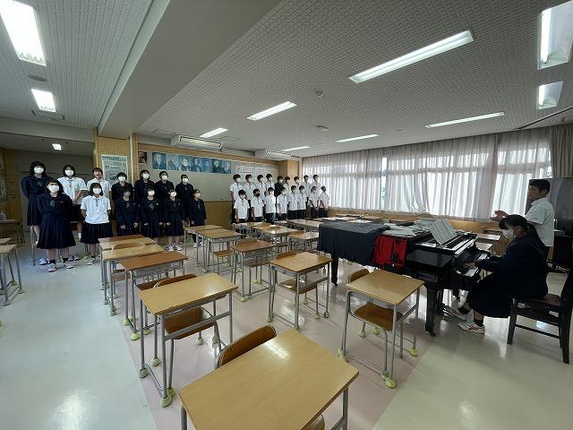 10/27(金)に行われる合唱コンクールに向け、音楽の授業はどの学年も合唱曲の練習に取り組んでいます。10/6(金)の2年生の授業では、各パートがそれぞれ輪になって、パートで音程を揃えて歌うことに取り組んでいました。「まだ2回しか通していない。」と言いながら、しっかりと声が出ています。当日が楽しみです。