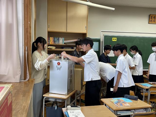 生徒たちは民主主義の担い手として、政治に関心をもつことの大切さについて、しっかりと考えることができました。