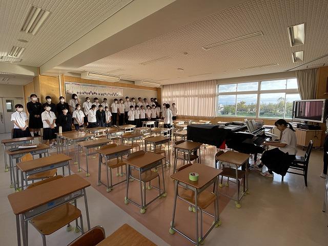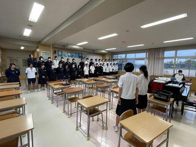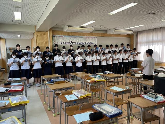 本日から合唱コンクールに向けた放課後練習がスタートしました。初日から声が出ているクラスもあれば、まだ調子がでていないクラスもありました。10/27(金)の本番に向け、それぞれのクラスらしい合唱を創りあげてほしいと思います。期待しています。