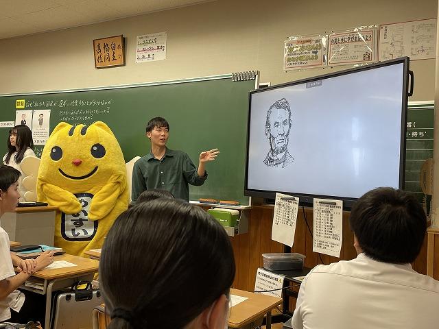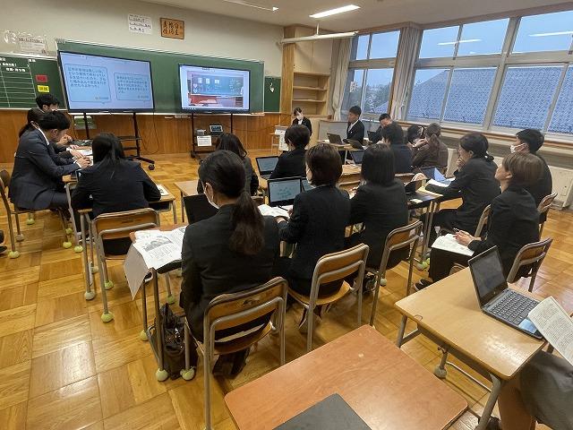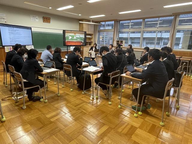 10/17(火)は県内各地から、多くの社会科の先生方に来ていただき、研究授業を行いました。この日は特別に、金沢市選挙サポーターE7(金沢大学法学部公認サークル)に所属する大学生の皆さんにゲストティーチャーとして授業に参加して参加していただきました。
