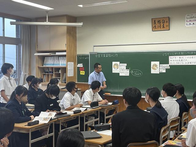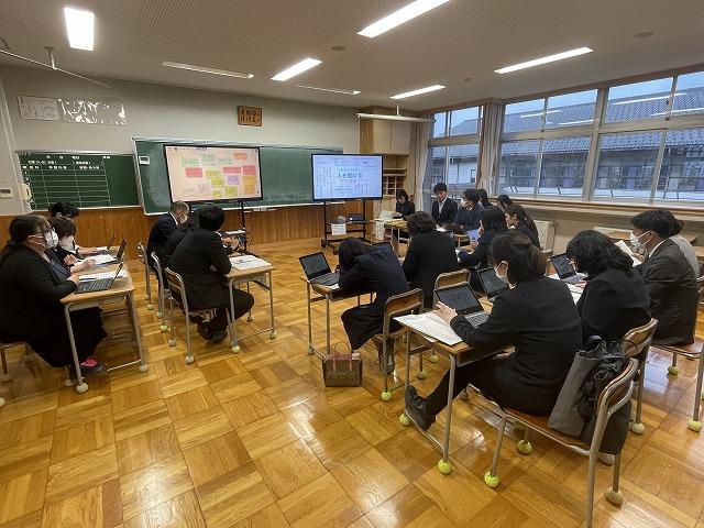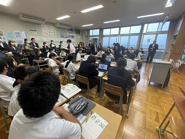 石川県教育委員会からの指定を受け、本校は今年度、道徳科の授業研究に取り組んできました。10/20(金)の午後、県・町教育委員会や他校の先生方、学校評議員の方々をお招きして、1年3組、2年6組、3年6組で公開授業を行いました。
