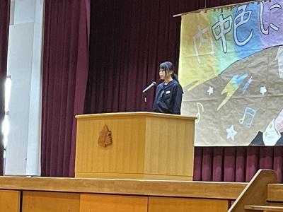 2年生の山本さんと3年生の石本さんは、どちらも学びの多い、感動的なスピーチを披露してくれました。2人の頑張りを称える生徒たちの拍手がとても温かかったです。山本さん、石本さん、ありがとうございました。