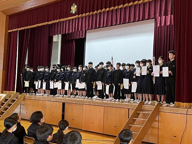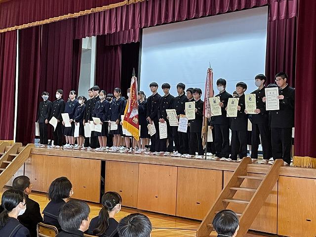 表彰伝達では加賀地区新人大会を中心に、たくさんの生徒たちの活躍について披露されました。