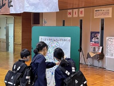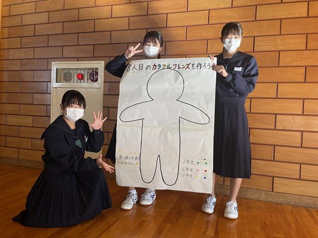 前期同様、後期も生徒会執行部のメンバーが生徒玄関で挨拶運動を行っています。今月は文化祭のテーマ「カラフルフレンズ」に因んだ取組です。執行部のメンバーが元気のよい挨拶をした生徒に学年ごとに違う色のシールを渡し、生徒ホールの掲示物に貼り付けてもらいます。カラフルな掲示物の出来上がりが楽しみです。