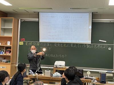 2年生技術科「白熱灯、蛍光灯、LEDを比較しよう」