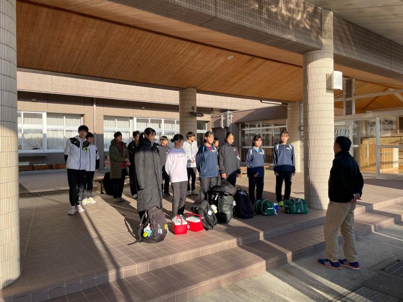 かほく市で開催される同大会に本校男女陸上部が出場します。11/9(木)の朝、陸上部顧問の森先生からの激励の言葉の後、選手たちは出発しました。