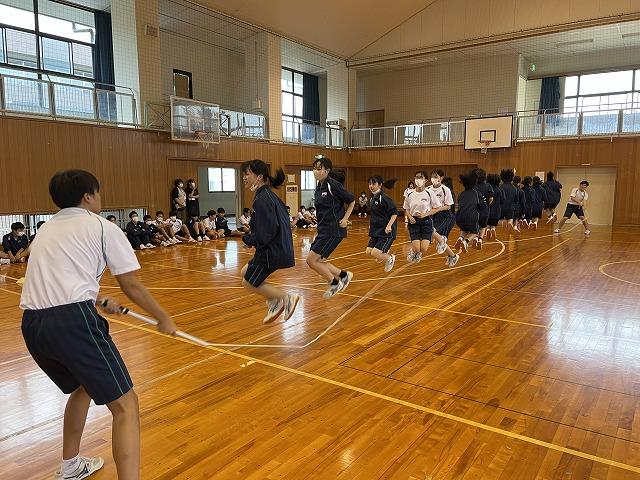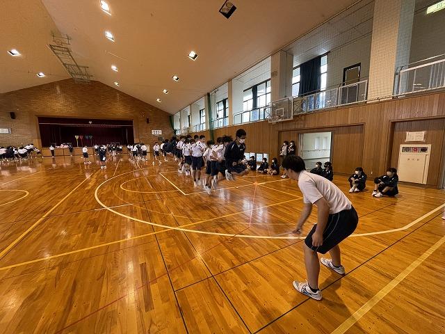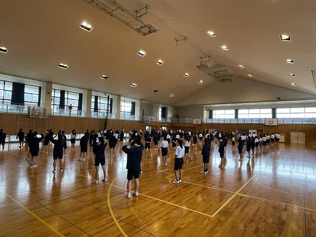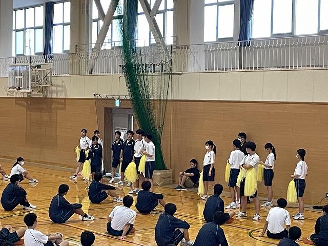 9/28(木)の午後、中学校体育館及び町総合体育館で応援合戦リハーサルを行いました。どの団も生徒たちは大きな声を張り上げていました。「明日、声がでるのかな?」と心配になるくらいです。また、総合体育館を使用させていただく際、生徒たちはシューズをきちっと並べていました。マナーもとってもよかったです。
