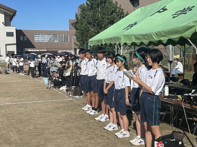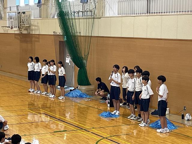9/13(水)の午後、今週末に行われる郡市新人大会の壮行会を行いました。1・2年生のみで挑む最初の公式戦です。公式戦デビューの選手もたくさんいます。壮行会では、各部のキャプテンがフレッシュな抱負を語ってくれました。
