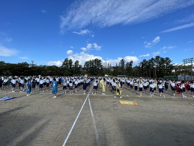 3年生の皆さんはリーダーシップを発揮し、最高の体育祭をつくりあげてくれました。皆さんの成長には感動しました。1・2年生の皆さんは3年生を支え、全校一体となって盛り上げてくれました。リーダーのバトンは1・2年生に引き継がれます。皆さんの益々の成長が楽しみです。