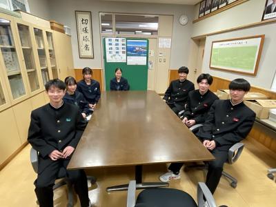 11/29(水)、本校陸上部から石川県強化練習会に参加する選手たちが校長室に報告に来てくれました。