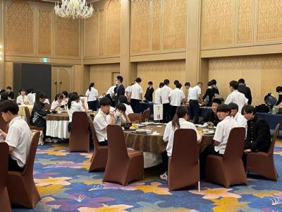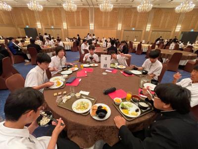 ホテル到着後は夕食です。ビュッフェスタイルのとっても美味しい食事に、生徒たちはうれしそうに食べていました。