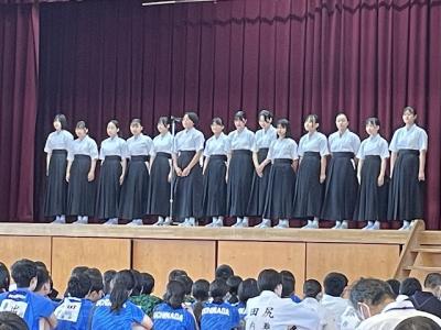 当初、体育館での実施予定でしたが熱中症予防のため、リモート配信で行うことになりました。