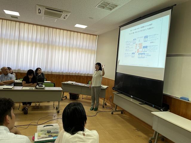 この夏休み期間、内灘中学校では授業の充実に向けて教職員の研修を行っていました。8月27日の午前中に行った「ICTの効果的な活用について」の研修では、新たなアプリケーションの使用法や効果的な活用場面について確認をしました。