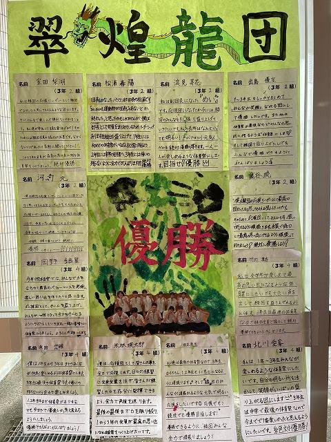 体育祭スローガンが決まりました。生徒会執行部から「全校生徒が団結して全力で取り組み、素晴らしい体育祭にしよう。」という呼びかけがありました。