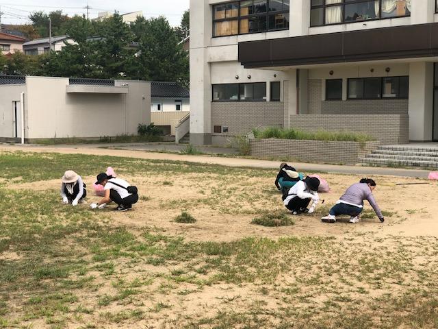 朝8時から約1時間半の作業時間でしたが、終了時にはごみ袋30袋以上の草を取ることができました。