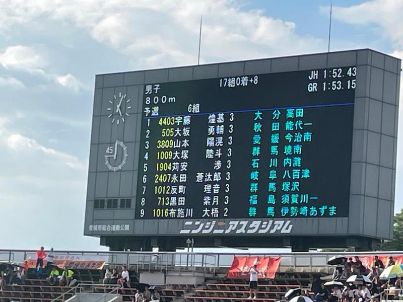 8/22(火)、本校陸上部の苅安さんが愛媛県松山市での同大会、男子800m走に出場しました。惜しくも決勝進出は逃しましたが、努力してたどり着いた全中の大舞台で、全力を尽くした堂々の走りを見せてくれました。素晴らしいレースをありがとうございました。