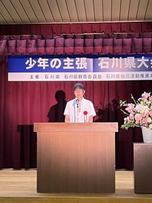 8/27(日)、県青少年総合研修センターで行われたこの大会に、本校3年生の石本千陽さんが出場しました。この大会は、県内各地区の予選を通過した生徒16名が参加して行われました。