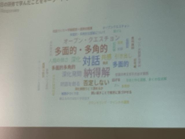 考えの広げ方や深め方など、山田先生には多くの示唆をいただきました。この研修で学んだことを2学期以降の道徳の授業に生かしたいと思います。楽しい道徳の授業を目指して、先生と生徒が一体となって頑張りたいと思います。