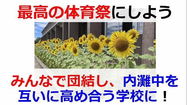 約40日間の夏休みが終わりました。生徒たちは1学期と変わらず、元気な姿を見せてくれています。9月は郡市新人大会や体育祭、10月には文化祭・合唱コンクールがあります。盛りだくさんの2学期がスタートしました。2学期も生徒たちの活躍に期待しています。