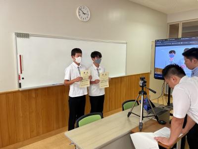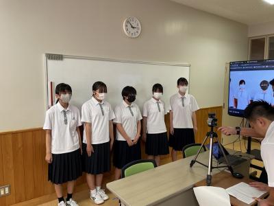 9/1(金)の6限に2学期始業式・全校集会をリモートで行いました。校長講話では「感謝の気持ちを言葉にし、互いに伝え合う」ことについて、学習からは「みんなの考え・意見をつなげること」について、生徒指導からは「スタートの時間を意識する」ことについて話がありました。また、夏休み中の各種大会で活躍した生徒たちの表彰伝達も行いました。