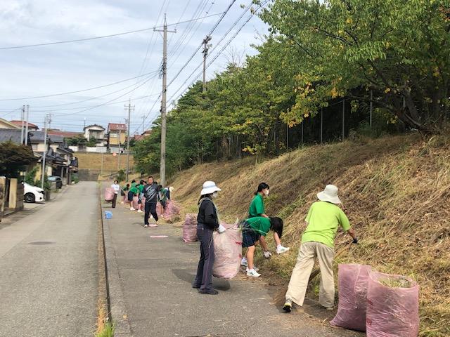 朝8時から約1時間半の作業時間でしたが、終了時にはごみ袋30袋以上の草を取ることができました。
