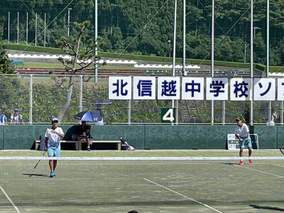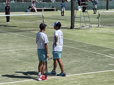 ゲームカウント3-4で惜敗しましたが、長野県1位の強豪をあと一歩のところまで追い詰める素晴らしい試合をしてくれました。試合中、2人の気合いの入った声が何度も響き渡っていました。本当によく頑張ってくれました。
