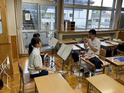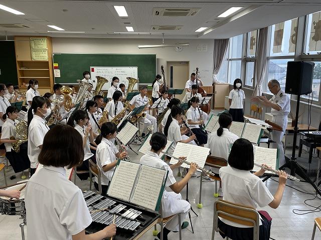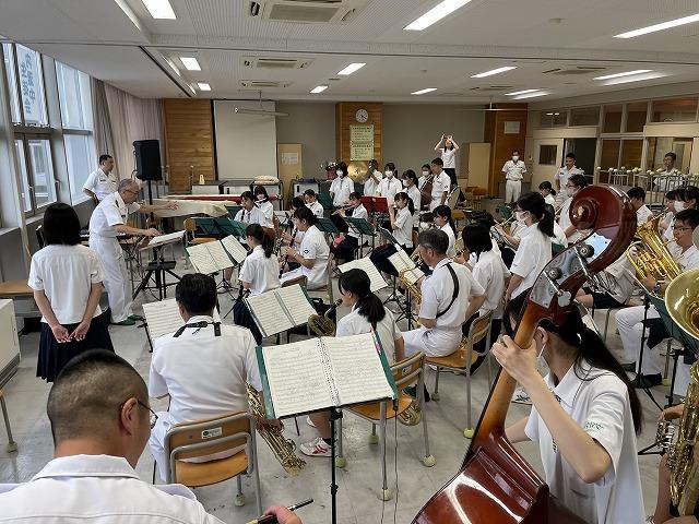 7/14(金)、京都府から海上自衛隊舞鶴音楽隊の皆さまが内灘中学校に来てくださり、本校吹奏楽部のご指導をしていただきました。