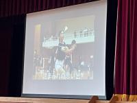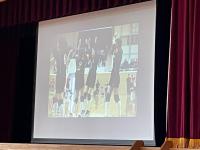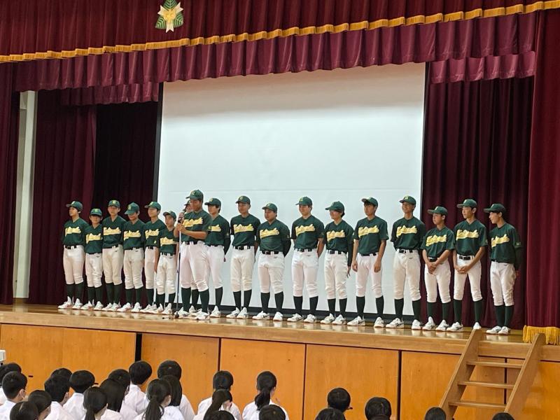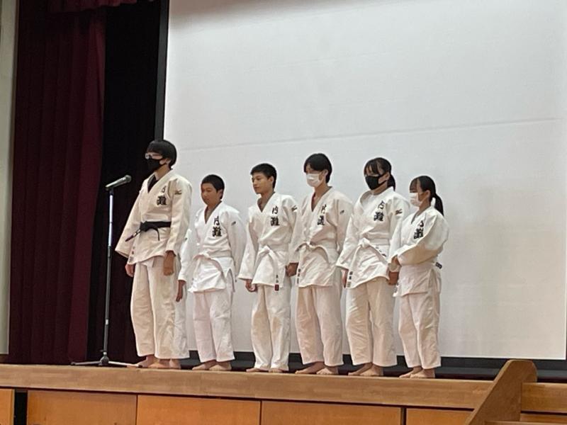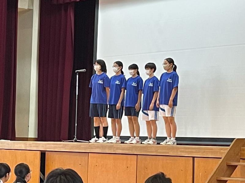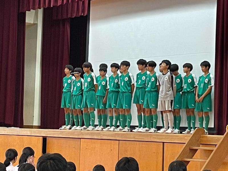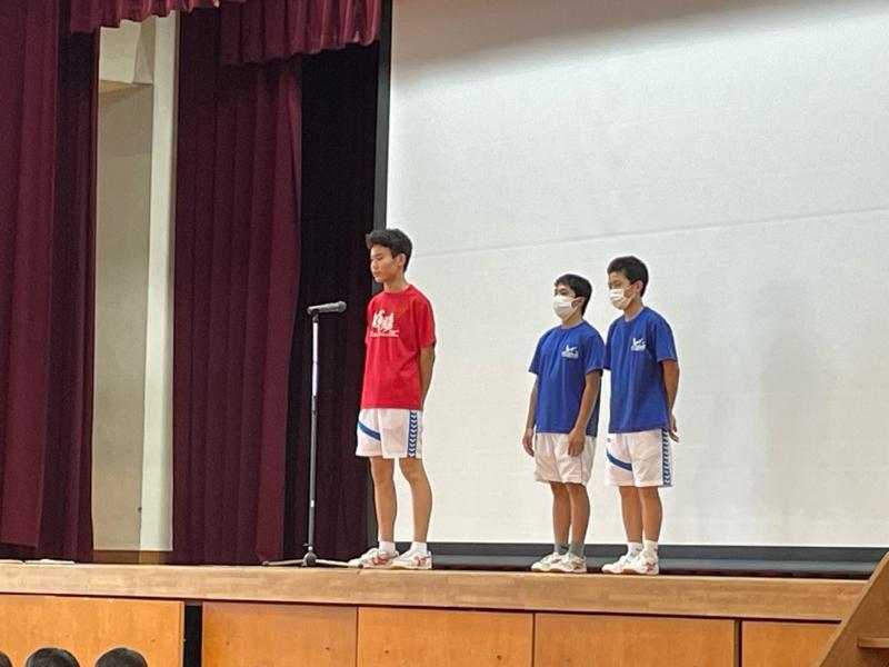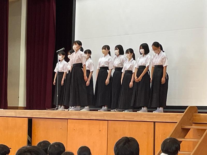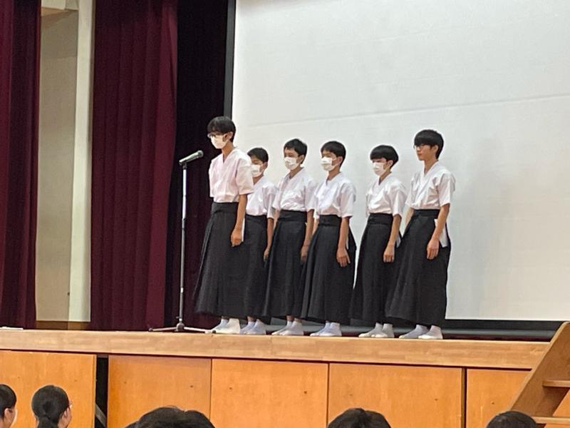 7/5(水)、週末から始まる県体へ向けての壮行会を行いました。各部キャプテンから力強い抱負のあと、加賀地区大会での本校生徒の活躍をまとめた動画を全校生徒で視聴しました。