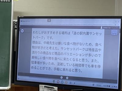 7/12(水)、県教育委員会の先生方にご指導をいただき1年生国語の研究授業を行いました。情報を取捨選択して整理し、相手意識をもって文章を作成する授業です。生徒たちはクロムブック上での思考ツールを用い、グループで話し合いながら課題に取り組んでいました。
