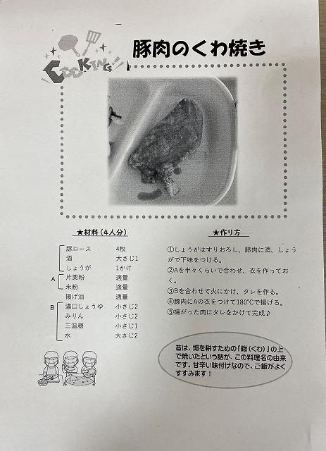 生徒ホールに「給食レシピ紹介」というコーナーがあります。給食のメニューのうち、いくつかのレシピがかかれたプリントを持ち帰ることができます。生徒の皆さんは、日曜日などの時間のあるとき、自宅で給食の味に挑戦してみてはいかがでしょうか。