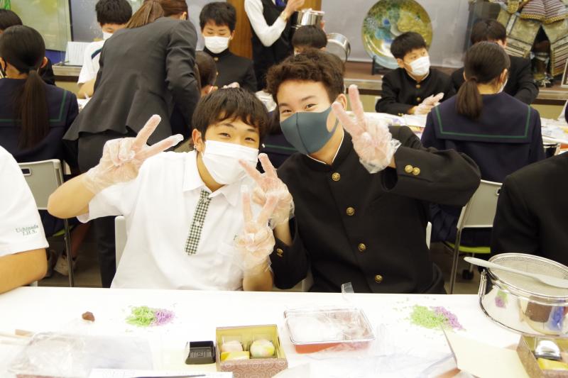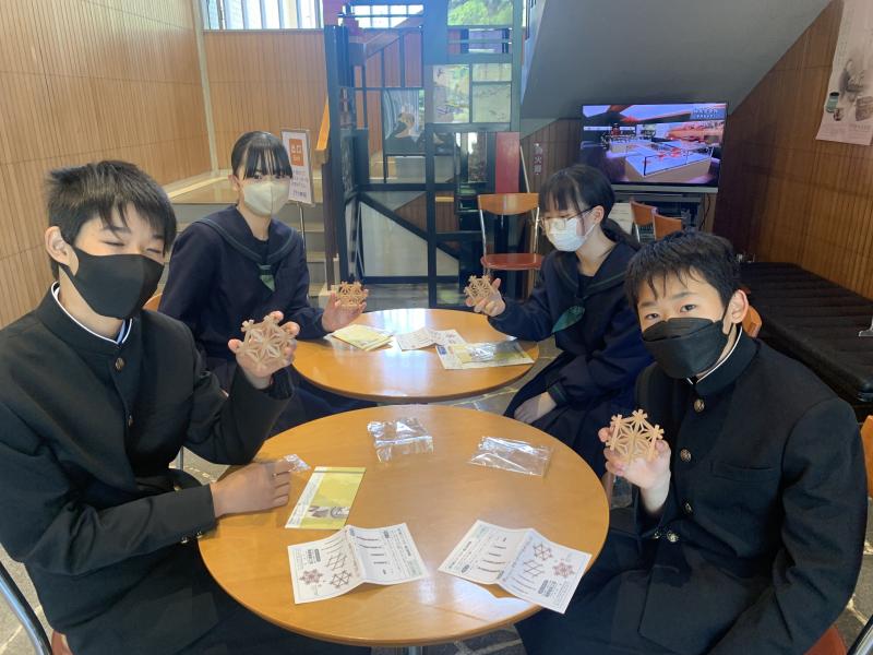2年金沢自主プラン 投稿日時 : 2023/05/10 教職員 5月9日(火)、2年生は「金沢自主プラン」に行ってきました。お天気にも恵まれ、とても良い1日となりました。和菓子作りや金箔貼りなどの体験活動をし、金沢の伝統や文化を学ぶことができました。また班で話し合いながら町中を回り、協力することの大切さや、公共の場所でのマナーやルールを守って行動することも学びました。 【21世紀美術館】 【教育会館(昼食)】 【兼六園】 【体験】起き上がり 金箔貼り 組子コースター 繭細工 和菓子 【道中】 【金沢駅】 Tweet {{options.likeCount}} {{options.likeCount}}