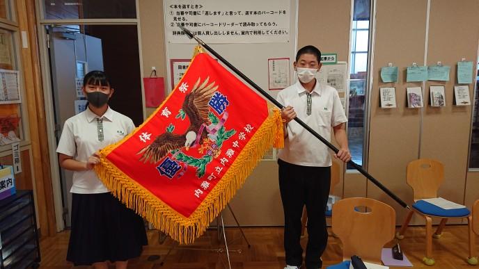 体育祭の優勝旗が贈呈されました「最初に手にするのはどの団だ!」 投稿日時 : 2020/09/16 教職員 9月15日 前期最後の生徒議会で、10月末に行われる体育祭に向けて作成した「優勝旗」が、校長先生から前後期の生徒会長へ贈呈されました。この優勝旗は、コロナウイルス感染拡大の影響でつらい思いをした全校生徒を元気づけようと、学校が作成したものです。どの団が最初にこの優勝旗を手にするか楽しみですね。 Tweet {{options.likeCount}} {{options.likeCount}}