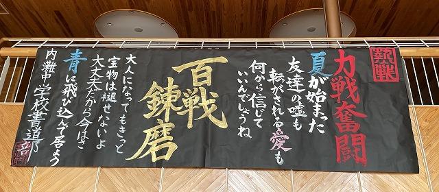 本校書道部の生徒たちが、県体に出場する選手たちのために、この夏、目標に向けて頑張る全ての内灘中生のために、見事な作品をつくってくれました。