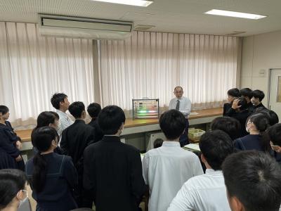 白熱電球や蛍光灯、LED照明について、電気を光に変える仕組みについて学習しています。生徒たちは興味をもって取り組んでいます。