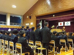 新たに13名の職員を迎え、式では谷内正樹校長が着任した職員を代表してあいさつしました。また、生徒代表の芦田駿佑さんが歓迎の言葉を述べました。