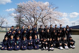 生徒たちは午後、校門で満開の桜を背景に、学級写真を撮影しました。