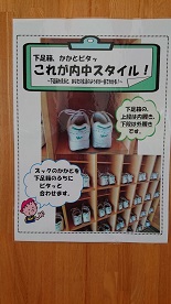 学校の顔、生徒玄関の様子です。一年生もしっかりと【かかと揃え】ができています。とてもさわやかな玄関です。
