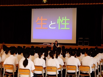 本日、2年生を対象とした「思春期講座」が行われました。星の子助産院の坂谷理恵子さんを講師としてお迎えし、「大人に近づく日々」をテーマに、思春期における心と身体の成長について学習しました。後半は代表生徒が妊婦・胎児の疑似体験をし、命の重さ・尊さを実感することができました。