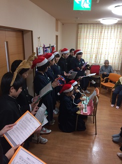 12日(水)に、生徒会執行部の生徒が、特別養護老人ホーム「夕陽ヶ丘苑」を訪れ、クリスマスソングを合唱するなど、入所者の方々とともに楽しいひと時を過ごしました。