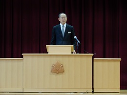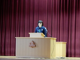 生徒会長の森川さんは、今年を締めくくる最後の言葉を堂々と述べました。