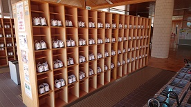 学校の顔、生徒玄関の様子です。一年生もしっかりと【かかと揃え】ができています。とてもさわやかな玄関です。