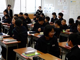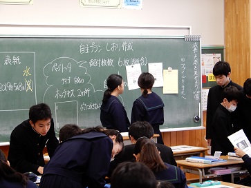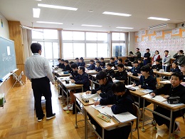 全ての学級が学級担任による授業で、保護者が見守る中、生徒たちはやや緊張した様子も見られましたが、どの学級も意欲的に活動していました。