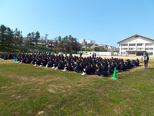 今回は「火災」を想定した避難訓練で、生徒たちは緊張感を持って臨むことができました。