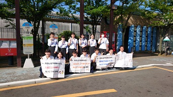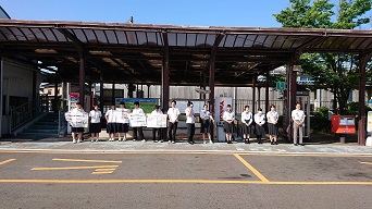 本校のあいさつ運動の一環として、11日は内灘駅にて内灘高校生徒会のみなさんとあいさつ運動を行いました。