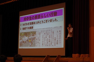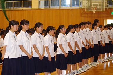 午前中に行われた終業式では、谷内校長が1学期の生徒の頑張りをたたえました。