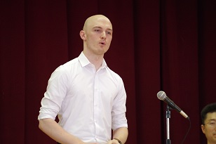 ALTのトム先生からは、大変流暢な日本語に英語を交えながら、温かいメッセージをいただきました。この度イギリスに帰国され、新たな人生を歩まれるとのことです。
