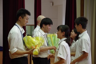 英語科の米嶋先生、理科の岡先生は、短い期間でしたが、情熱を持って生徒に接してくださいました。生徒たちから花束を手渡され、感無量の表情でした。
