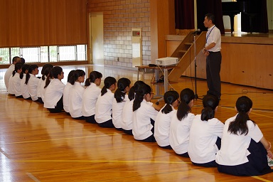本日31日は全校登校日です。朝清掃の後、全校集会および北信越壮行会を行いました。